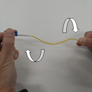 束の巻き方向と直角に引き出すと捻れが生じますので、その際は束を回転しながら引き出して下さい。